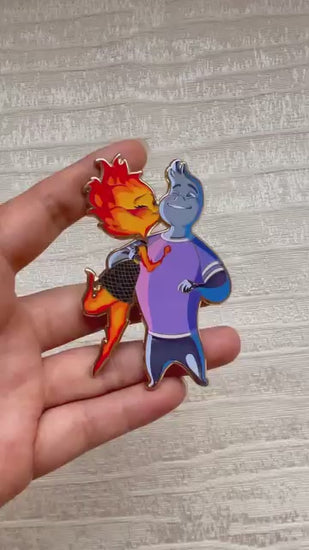 Catch the cutest clash of fire and water with this fun Disney fantasy pin! Ember’s fiery spark meets Wade’s cool splash in a cheeky kiss that’s bursting with magical energy. With bright colors and playful details, this pin perfectly captures their steamy—and splashy—moment of love. A must-have for fans who love a little heat and a little splash in their fairy tales!